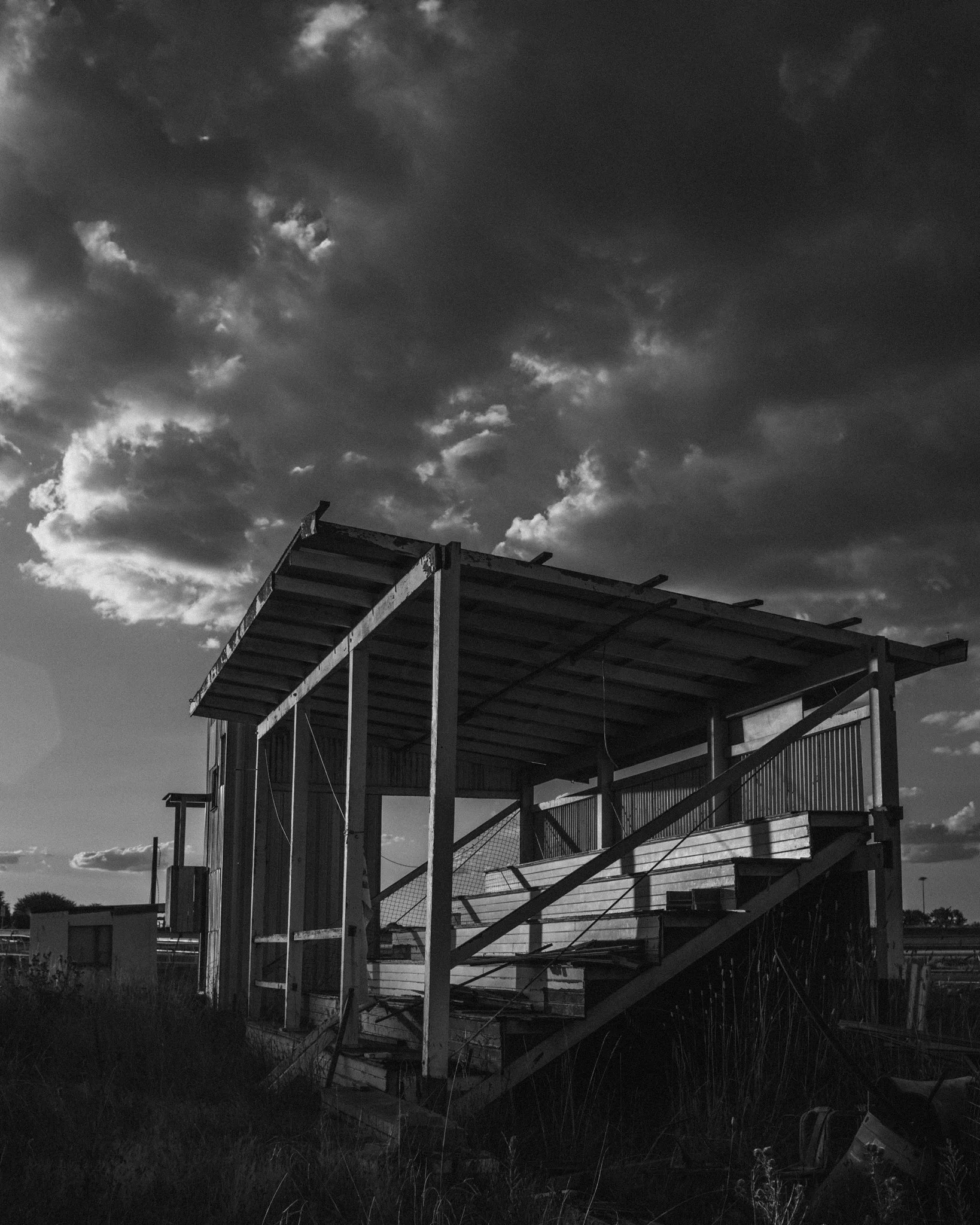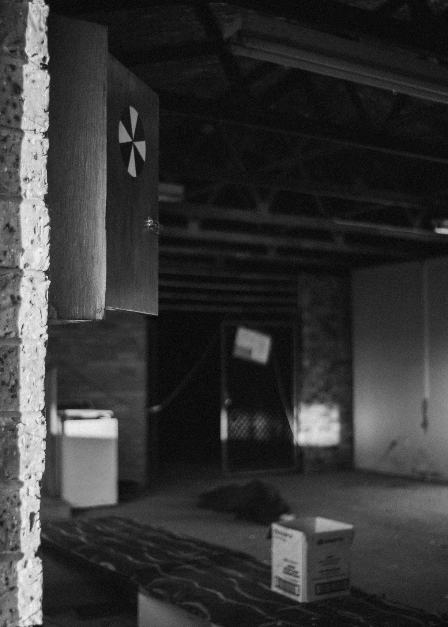 The lighting made a big difference to the mood. Historically, this location has always felt super dark and dreary; for most of the year, light doesn’t seem to touch the inside of any of the buildings in a significant or interesting way. It was nice to see little pockets of both the bar and the greyhound holding areas lit up, though it was a shame there wasn’t much going on in terms of subjects. Items are always being dumped and taken away from this location, so you never know what you’re going to find, and this time, we won on lighting and lost on the garbage. Ah well.